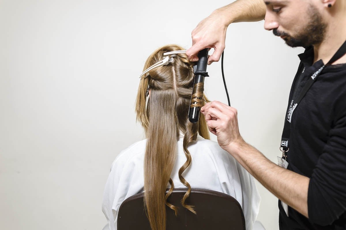 Arkadaki iki kısma da aynı yönde maşa uygulayın. Öndeki kısımlara, kulakların arkasından başlayarak ters yönde maşa uygulayın. Uzman tavsiyesi: Daha doğal görünümlü bukleler için saç maşasını dik tutun.