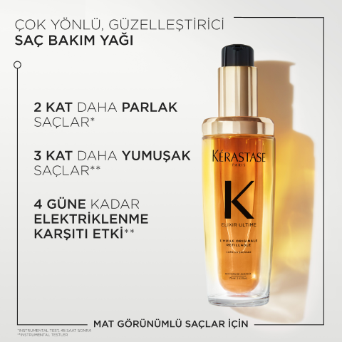 Artık yeniden doldurulabilen Kérastase Elixir Ultime ile kendinizi en iyi lüks saç bakım yağıyla ödüllendirin. Yabani Kamelya ve Fransız Kamelyası başta olmak üzere en iyi malzemelerle zenginleştirilen her bir damla, tüm saç tipleri için son derece lüks bir yağ bakımı sunar.